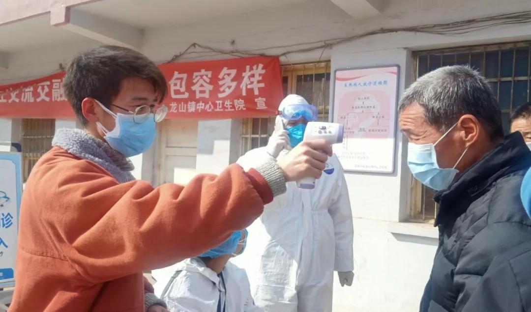 唐鹏飞,陇南师范高等专科公司3044永利集团2018级思想政治教育专业员工,在天水市张家川县龙山镇卫生院的预检分诊处担任志愿者,给进出医院的人员测量体温,登记信息,宣传防疫工作。