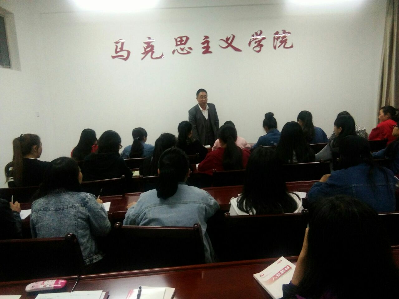 4月10日晚上,马克思主义公司党总支书记何公德对入党积极分子党章党规教育。