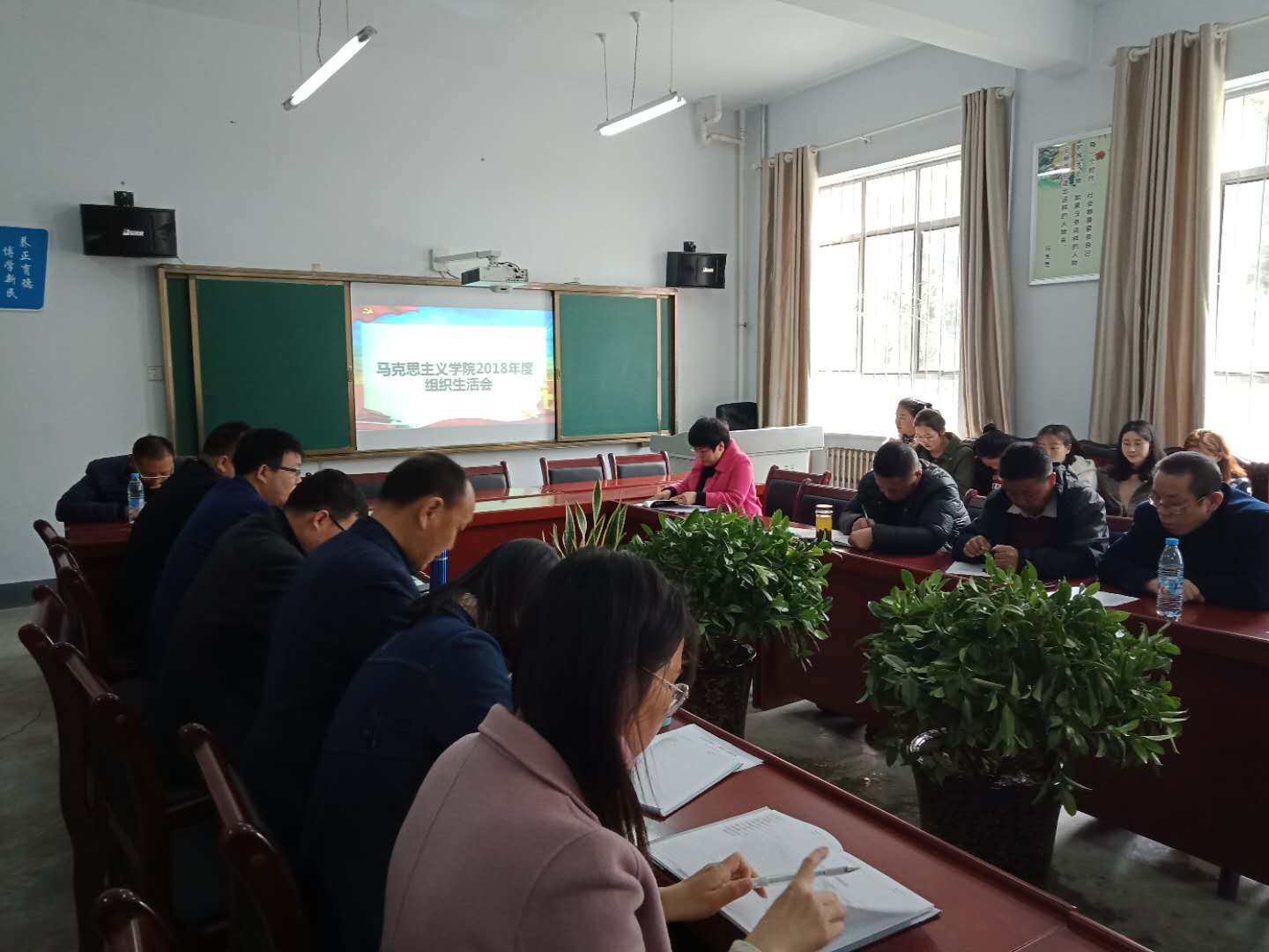 为深入学习贯彻习近平新时代中国特色社会主义思想和党的十九大精神,按照《陇南师专2018年度基层党组织生活会和开展民主评议党员实施方案》通知的要求,马克思主义公司党总支于3月19日下午在会议室召开2018年度民主生活会及民主评议党员大会,会议由经理马勤学主持,全体党员参加会议。