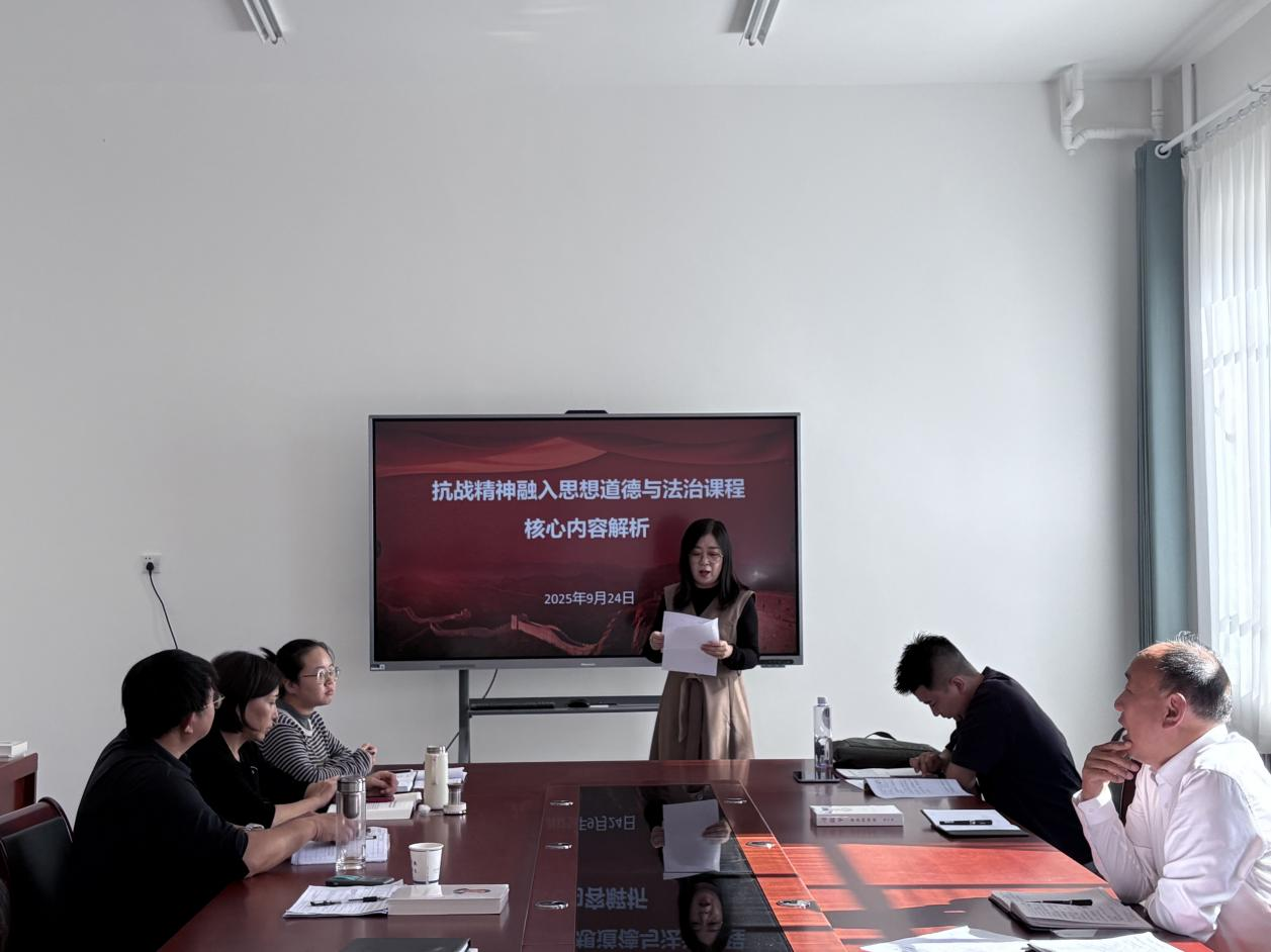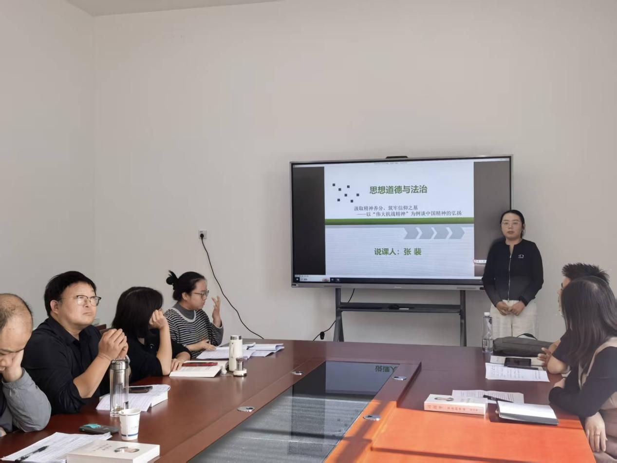 公司思想道德与法治教研室组织开展以“伟大抗战精神融入思想道德与法治课程”为主题的集体备课会。备课会上,张丽娟紧扣教材对抗战精神融入课程核心内容进行了详细解析,并就融入方法和形式,以及注意事项进行了一一介绍;张裴聚焦《思想道德与法治》第三章“继承优良传统,弘扬中国精神”,从教材分析、学情分析、教学目标、教学重难点、教法学法、教学过程和板书设计七个方面进行了说课展示;教研室其他教师围绕两位老师的解析与说课和听评课情况,进行了深入探讨,分享了各自的教学思路、案例选取、方法创新。通过以上集体备课环节,教师们彼此印证了自己的教学设计理念,拓宽了教学视野,提高了育人本领,增强了育人自信。