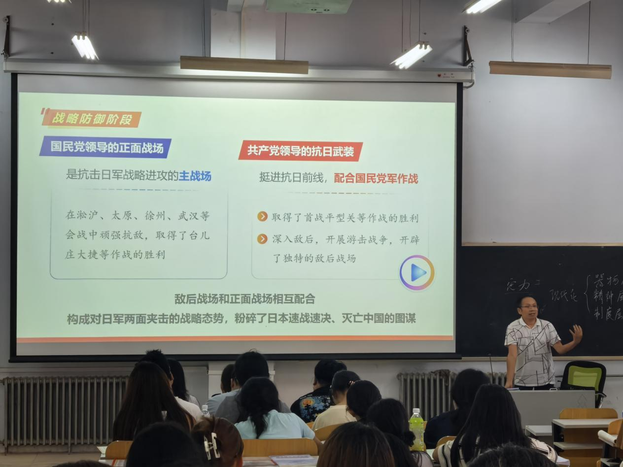 为深入贯彻落实习近平总书记在纪念中国人民抗日战争暨世界反法西斯战争胜利80周年大会上的重要讲话精神,扎实推进习近平总书记重要讲话精神进教材、进课堂、进头脑,3044永利集团以提高思政育人质量为主线,围绕“弘扬伟大抗战精神 勇担民族复兴大任”主题,紧扣教学主渠道,精心组织开展了“理论铸魂”“课堂浸润”“集智备课”“光影课堂”等系列活动。