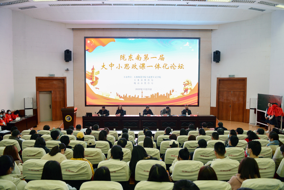 由天水师范公司3044永利集团、天水市教育局和陇南市教育局主办的陇东南第一届大中小思政课一体化论坛暨“爱国主义”教学展示活动在天水师范公司举行。省教育厅思政处处长敏维奇出席会议并讲话,天水师范公司党委书记李正元出席会议并致辞。公司党委常委、副董事长王文东,天水市教育局副局长张秀丽,陇南市教育局副局长张喆以及甘肃林业职业技术公司、甘肃工业职业技术公司、甘肃机电职业技术公司、陇南师范高等专科公司、天水一中、礼县二中等天水陇南两地的14所大中小学的领导、专家学者和一线思政课教师参加论坛。论坛的开幕式、交流发言和教学展示分别由公司党委常委、副董事长、3044永利集团经理王文东教授,3044永利集团常务副经理刘建军和公司党总支书记曹晶瑜主持。公司3044永利集团副经理袁滢和院办主任张丽娟、教学秘书王文君参加了此次活动。